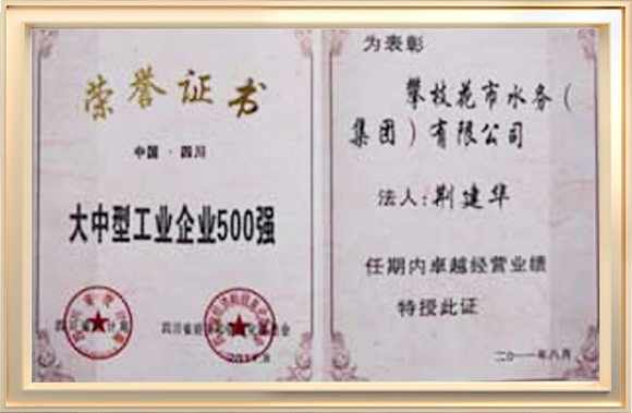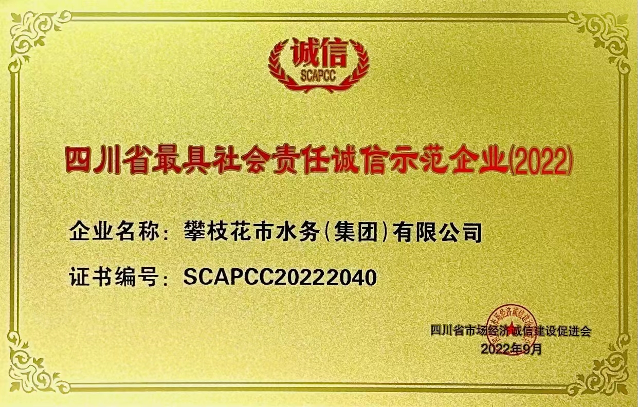 先后榮獲了全國模范勞動關(guān)系和諧企業(yè)、全國“五一"勞動獎狀、全國“安康杯競賽活動優(yōu)勝單位"、中國供水排水行業(yè)突出質(zhì)獻單位獎、全國模范職工之家、國家建設部精神文明建設先進單位、發(fā)揚“水之魂”精神為震后重建再立新功、四川省“五一”勞動獎狀、四川省誠信示范單位、四川省先進企業(yè)、四川省大中型工業(yè)企業(yè)500強、四川省水的生產(chǎn)和供應最效益十強最大規(guī)模十強,攀枝花市企業(yè)50強,攀枝花市A級納稅單位等數(shù)十項帶譽稱號。